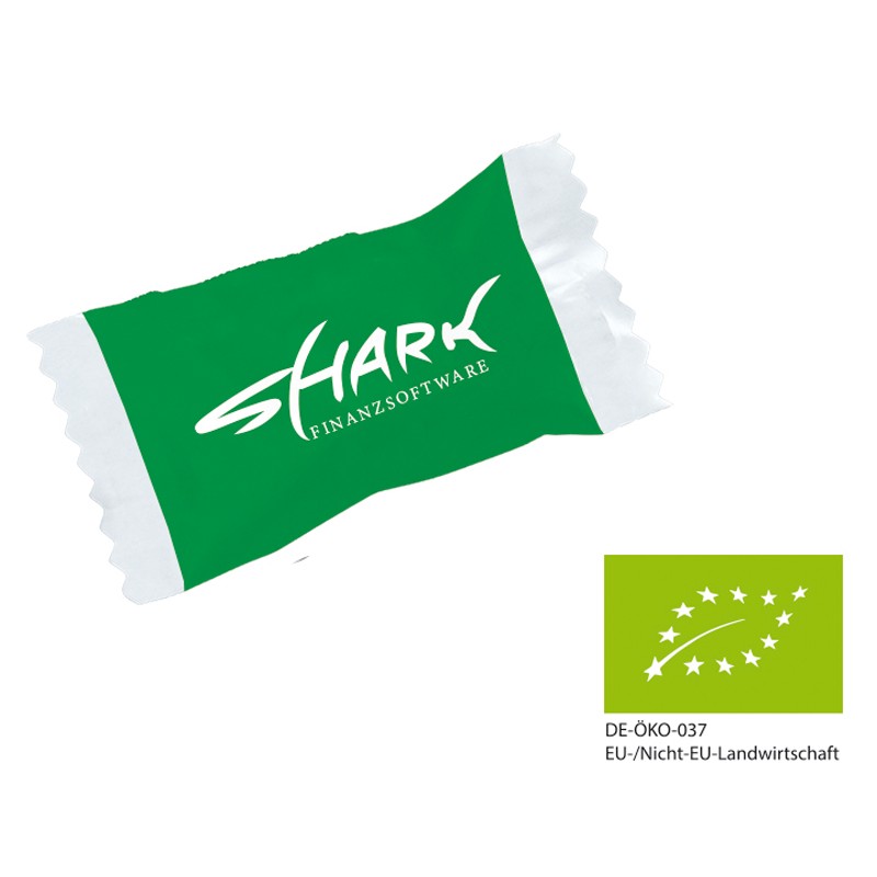 BIO-Bonbons im bedruckten Tütchen. Die Folie liefern wir in weiß oder transparent. Mindestens 50 kg pro Geschmacksrichtung und Farbe. Sorten: Apfel, Kirsche, Cola, Zitrone, Birne, Erdbeere, Blaubeere, Weintraube, Minze, Honig-Zitrone, Lakritzextrakt und grüner Tee. Wir sind BIO-zertifiziert. DE-ÖKO-037
