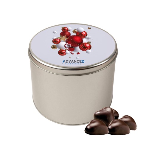 Personalisierte Runddose, befüllt mit Lebkuchenherzen der Marke Weiss mit Aprikose-Füllung, lose geschüttet.