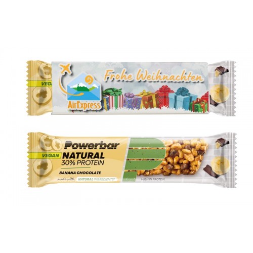 Original Riegel der Marke PowerBar mit bedrucktem Schuber in verschiedenen Geschmacksrichtungen.