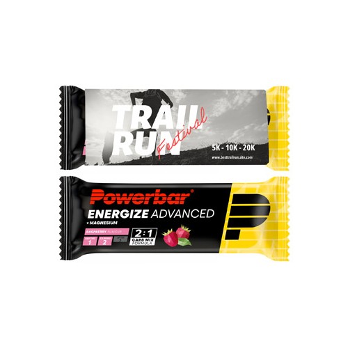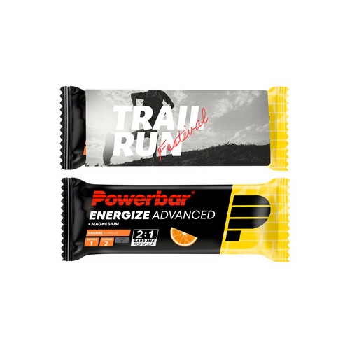 Powerbar Energize Advance, original verpackt, im individuell bedruckten Werbeschuber.