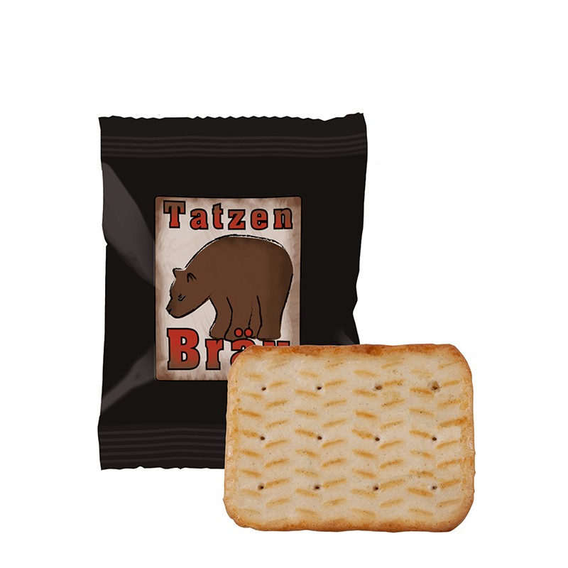 Ein Cracker im individuell bedruckten Werbetütchen verpackt.