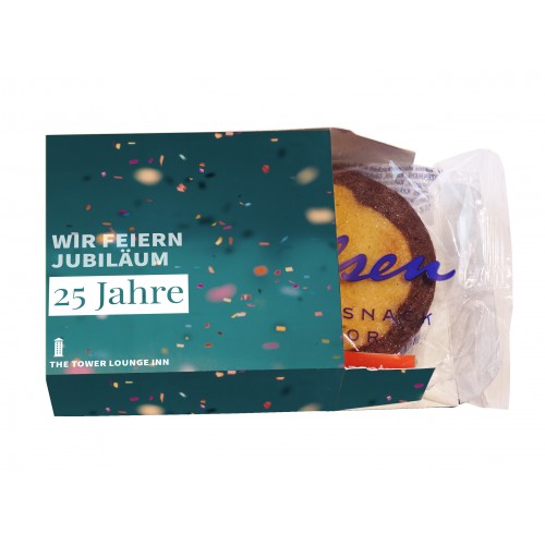 Mini-Marmorkuchen der Marke Bahlsen, original verpackt in wiederverschließbare, individuell bedruckte Schachtel.