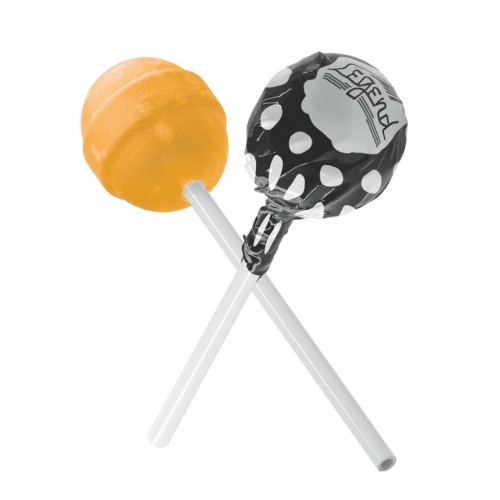 Kugellutscher in bedruckter Folie, Werbung mittig zentriert, Folie um den Stil versiegelt. 1 Geschmackrichtung je 6.000 Stück. Falls Sie eine Mischung verschiedener Geschmackssorten wünschen, können Sie 1 Geschmack je 6.000 Lutscher bestimmen. Zur Verfügung stehen die folgenden Geschmackssorten: Zitrone, Kirsche, Mandarine, Apfel, Cola, Erdbeere, Blaubeere, Lime, Pfefferminze, Ananas, Vanille, Lakritze.