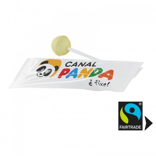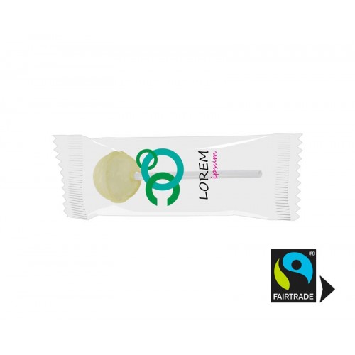 Fairtrade Kugellutscher im bedruckter weißen oder transparenten Werbetütchen. Sie können eine Geschmacksrichtung je 6.000 Kugellutscher bestimmen. Zur Auswahl gibt es: Apfel, Kirsche, Cola, Zitrone, Birne, Erdbeere, Blaubeere, Weintraube, Minze, Honig-Zitrone, Lakritzextrakt und grüner Tee.