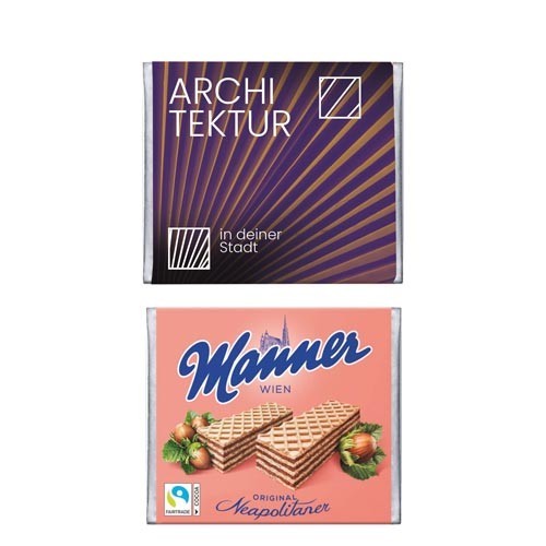 Original Manner verpackt im individuell bedruckten Werbeschuber.