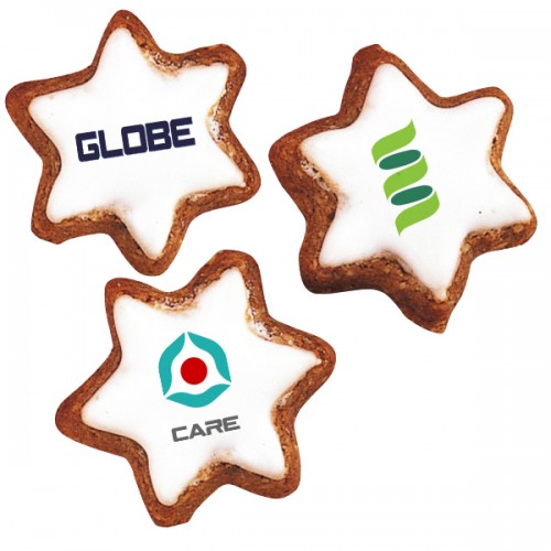 Nürnberger Zimtsterne, 4-farbig, individuell bedruckt mit Ihrem Logo.