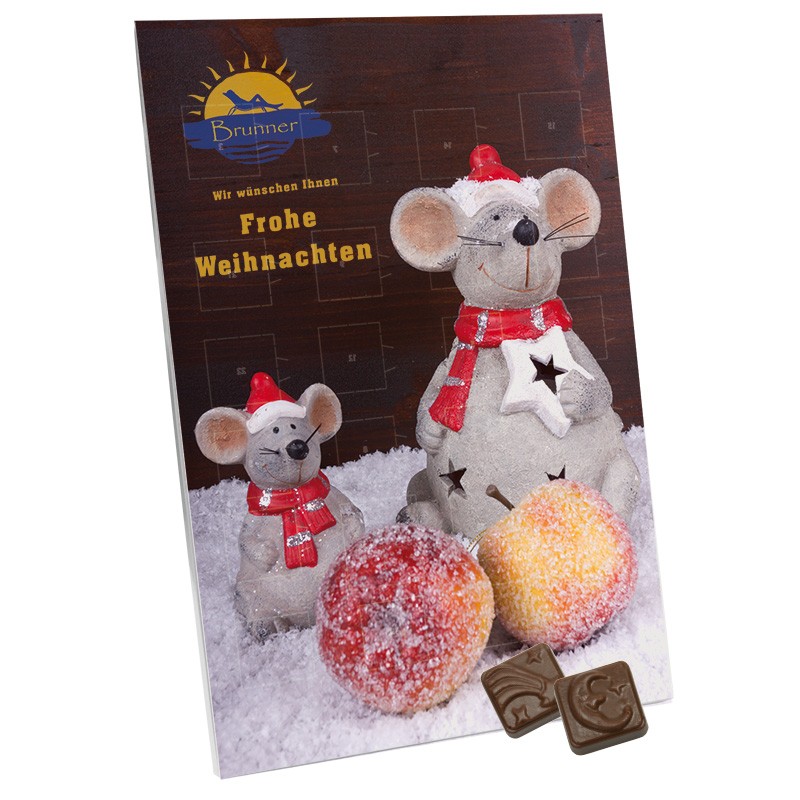 Wall Advent calendar with your design. Contains 24 chocolate piece behind the windows. Sealed with transparent foil.