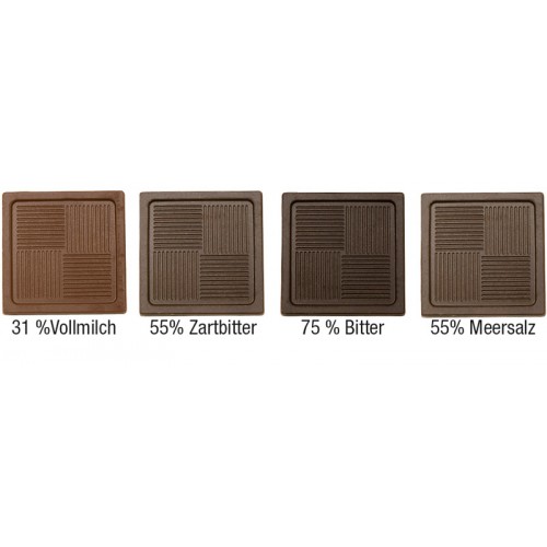 | Contents | 1 piece whole milk 31%, semi dark 55%, dark 75% or semi dark chocolate with sea-salt 55% |