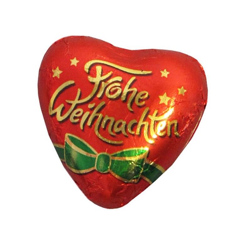 Chocolate heart with printed foil. Finest milk chocolate with 33% cacao.