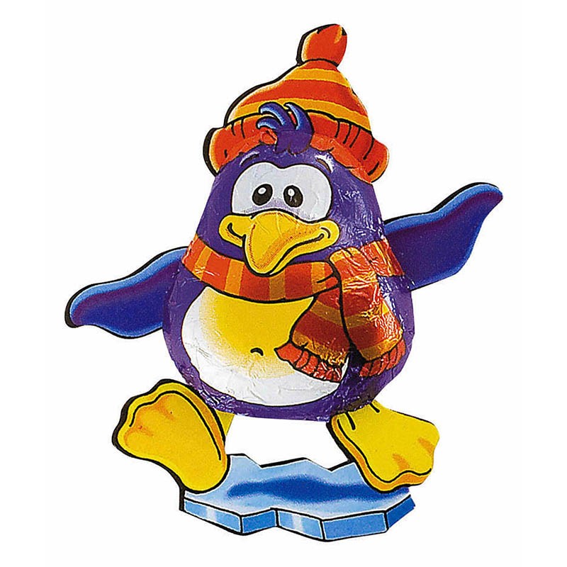 Chocolate penguin with printed foil. Finest milk chocolate with 33% cacao.