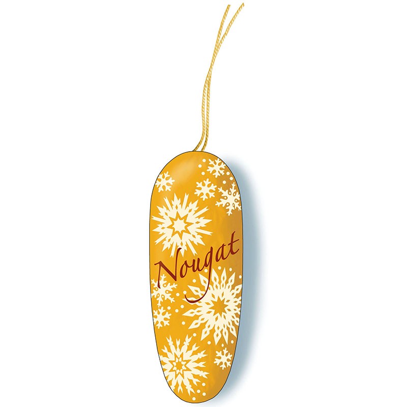Nougat cone with printed foil. Finest milk chocolate with 33% cacao.