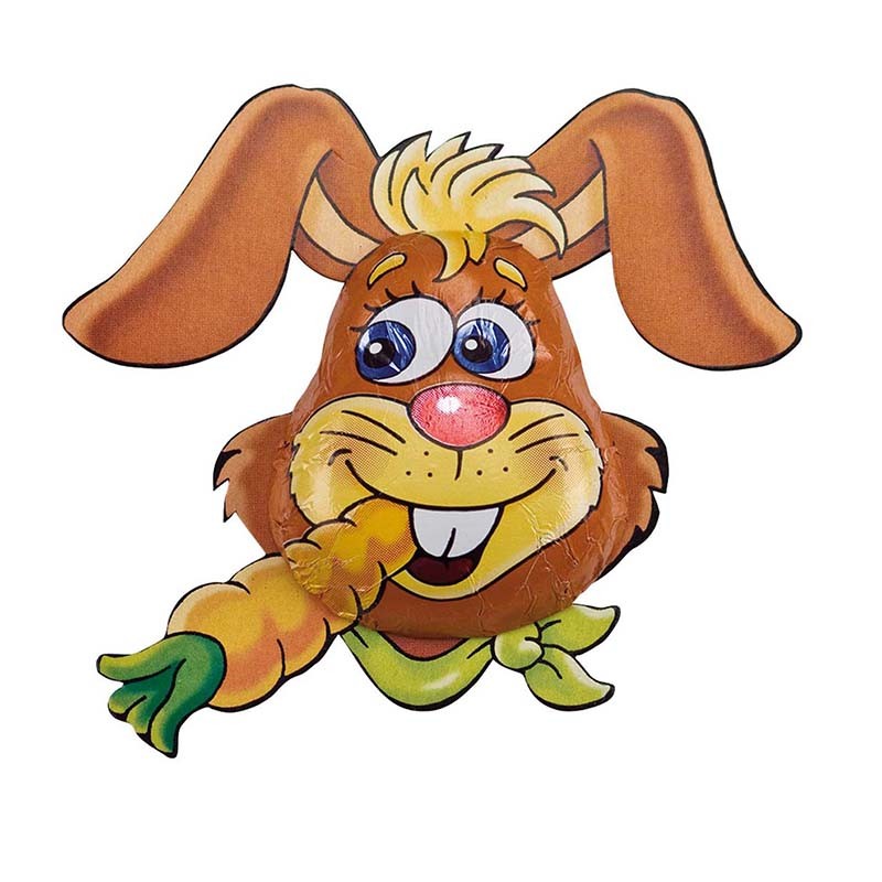 Chocolate bunny with printed foil. Finest milk chocolate with 33% cacao.