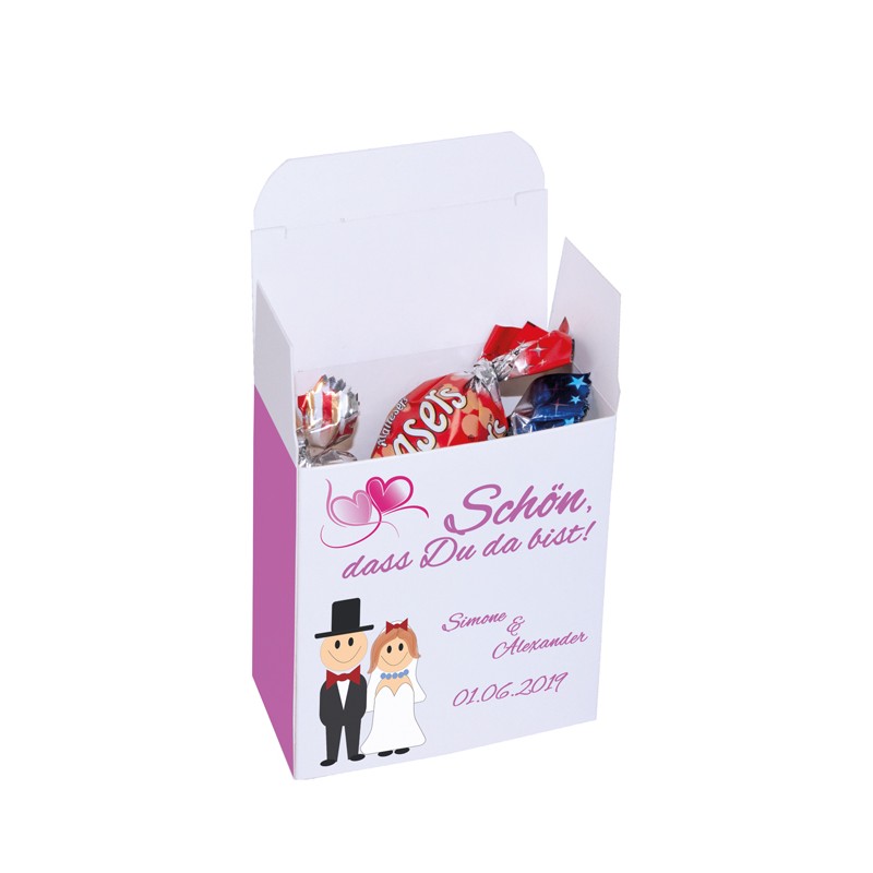 Resealable box filled with 5 original Celebrations. The cube is printed with your motive on five sides. Promotional placement on all sides of the box.