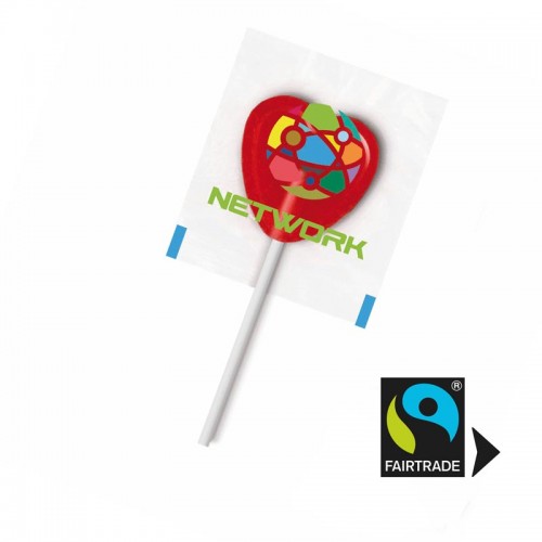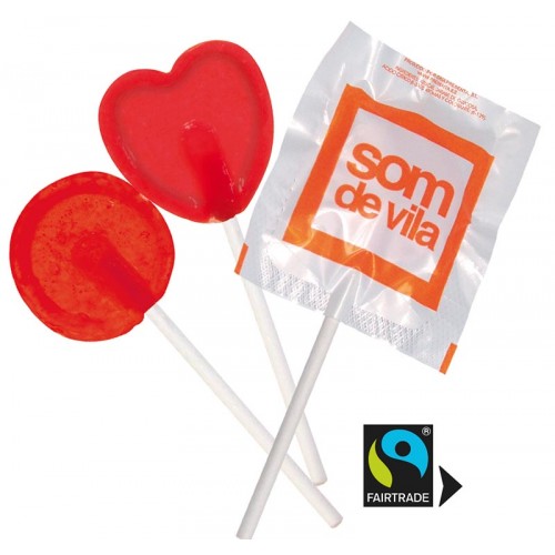 Lolly flat,Round or heart-shaped Fairtrade flat lollies in printed white or transparent foil. 1 flavor per 10,000 pieces. If you want a mix of different flavors (e.g. Apple, Cherry, Cola, Lemon, Pear, Strawberry, Blueberry, Grape, Mint, Honey Lemon, Liquorice Extract and Green Tea), you can specify 1 flavor per 10,000 lollipops. round or Round or heart-shaped multivitamin flat lollies in printed white or transparent foil. 1 flavor per 10,000 pieces. If you want a mix of different flavors (e.g. lemon, cherry, mandarin, apple, cola, strawberry, etc.), you can specify 1 flavor per 10,000 lollipops.heart shaped, with centered print in personalized foil. 1 flavour every 10.000 pieces.