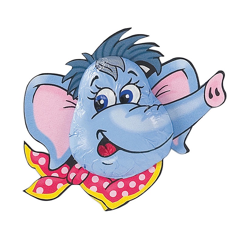 Chocolate elephant with printed foil. Finest milk chocolate with 33% cacao.