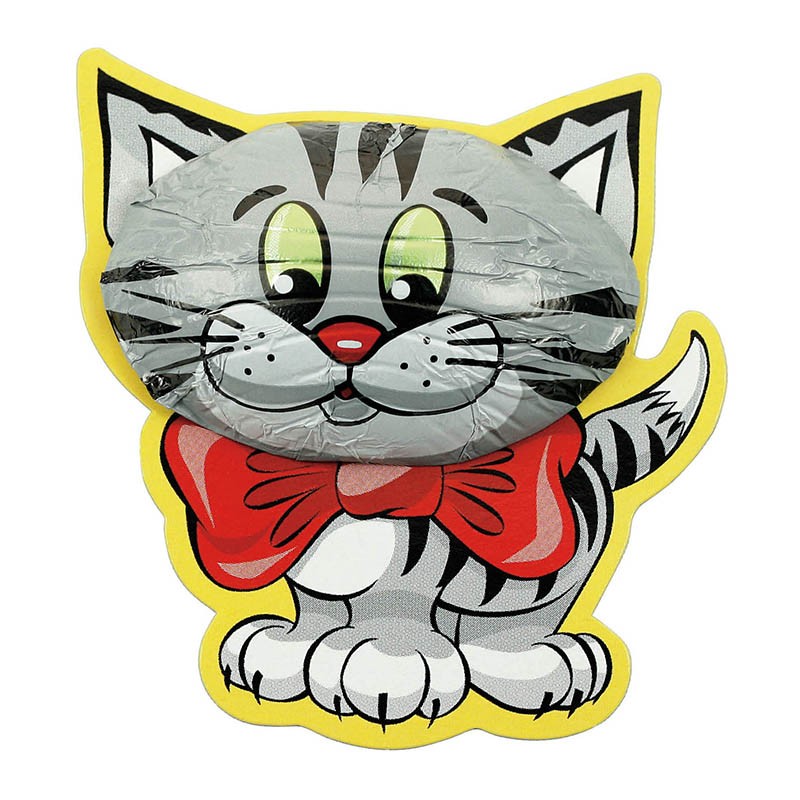 Chocolate cat with printed foil. Finest milk chocolate with 33% cacao.